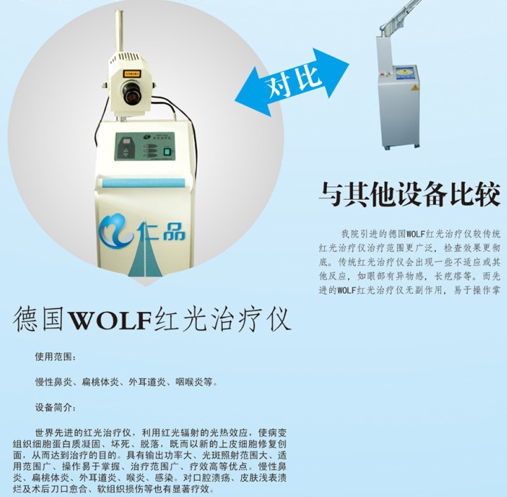 ★配套诊疗“装备”精良: 日本Olympus纤维鼻咽喉镜、德国WOLF鼻内窥镜、飞利浦双层螺旋CT机、德国WOLF支撑喉镜、德国WOLF耳科显微镜、德国WOLF喉科显微镜、血球计数仪、Hp呼吸测 试仪、全自动血细胞分析仪、全自动生化分析仪、血凝仪、酶标仪、细菌培养室、药敏试验室等百余种现代化医疗设施。