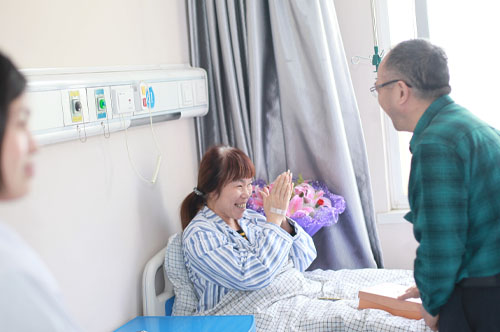 对于老吴的来访,住院的病人们都感到十分的温馨。每到一个病房,老吴都向主治医生详细询问患者的病情,了解住院病人的生活情况和治疗情况,亲切地和患者聊家常,叮嘱患者一定要配合医生的治疗,保持一个乐观开朗的心态,才能更快地复原。老吴还将自己带的鲜花和礼物送到每位患者手中,祝他们早日出院。